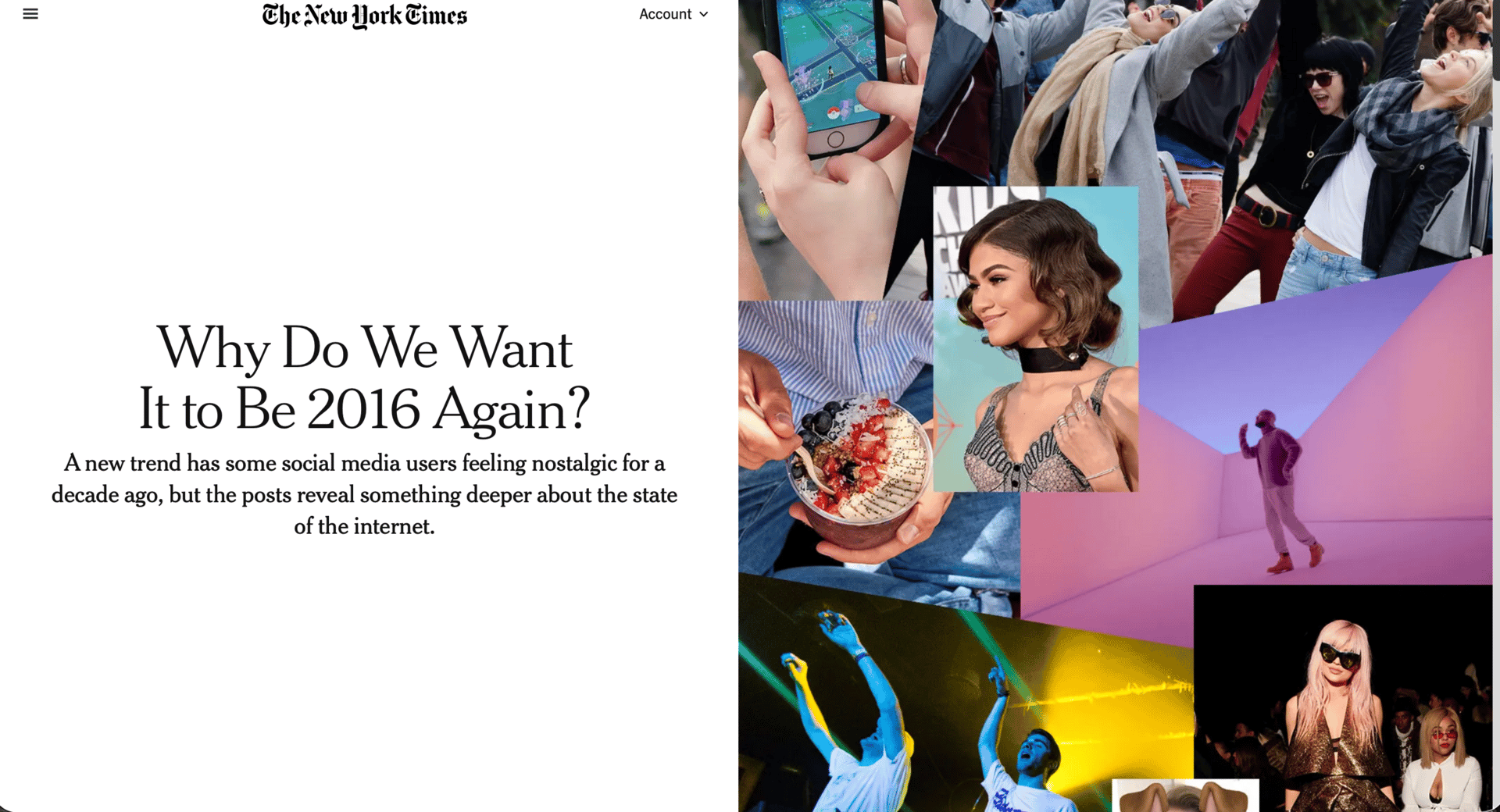 According to Google Trends, “2016 vibes” hit an all-time high this month. The New York Times tries to explain why we’re all so obsessed with this particular year.